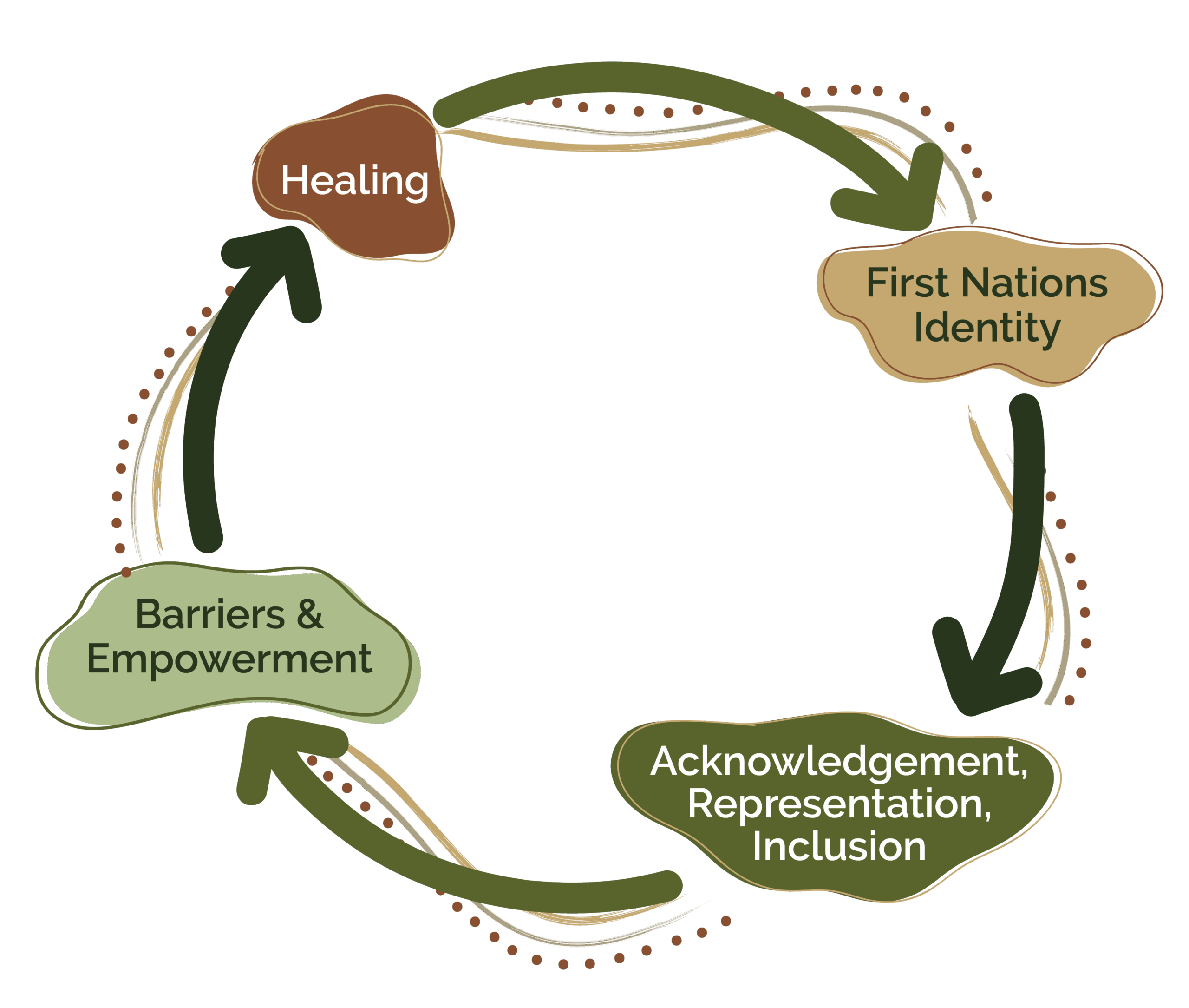 Throughout the workshop, many topics were discussed which Murawin categorised into four key themes.  From workshop discussions it was evident these four themes form a never-ending circle, intertwining and interacting with each other in a web of meaning. The diagram below and participant comments helped to create an impactful report which foregrounded the barriers and the challenges, as well as the hopes and aspirations the First Nation participants hold for Caring for Country.